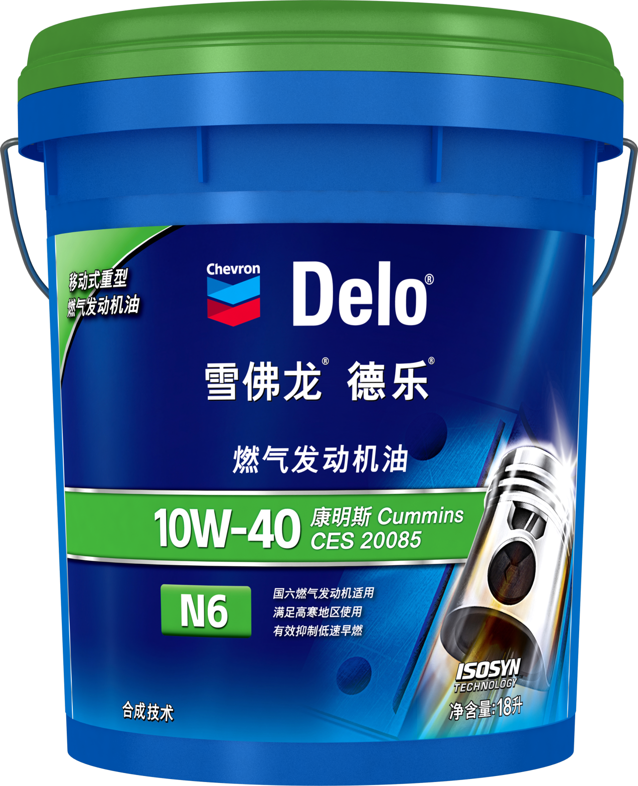 雪佛龙®德乐®燃气发动机油 N6 10W-40,采用ISOSYN®合成技术和低灰分配方,是优质的CNG/LNG/LPG(压缩天然气/液化天然气/液化石油气)发动机油,符合康明斯CES 20085性能要求。适用于国六及以下排放标准的燃气发动机,为各类以CNG/LNG/LPG为燃料的高温、重负荷工况下运行的发动机提供保护和强劲动力,满足高寒地区的设备使用需求。