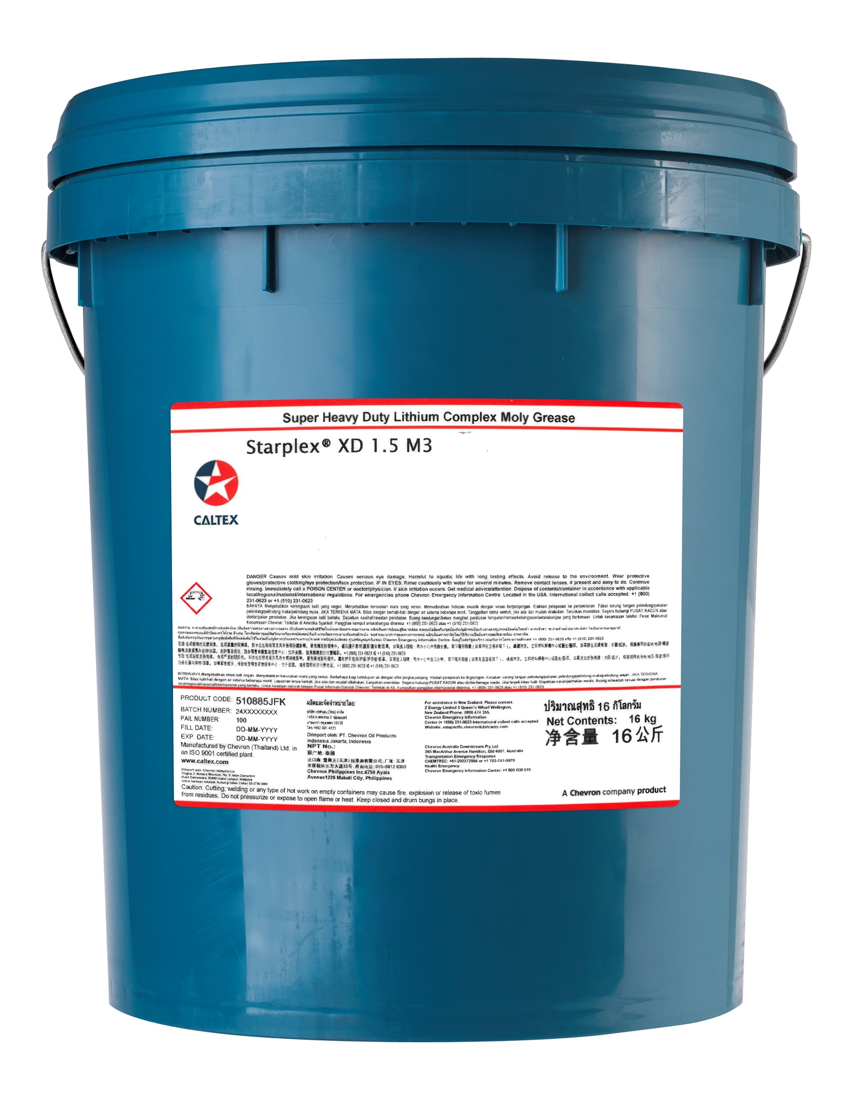 超重负荷极压润滑脂 1.5(Starplex XD 1.5 M3)是一款适用在高温、极端压力、冲击载荷和水冲刷等苛刻工况下使用的特殊润滑脂。它由高粘度合成基础油和抗剪切稳定性强的复合锂皂基调配而成。